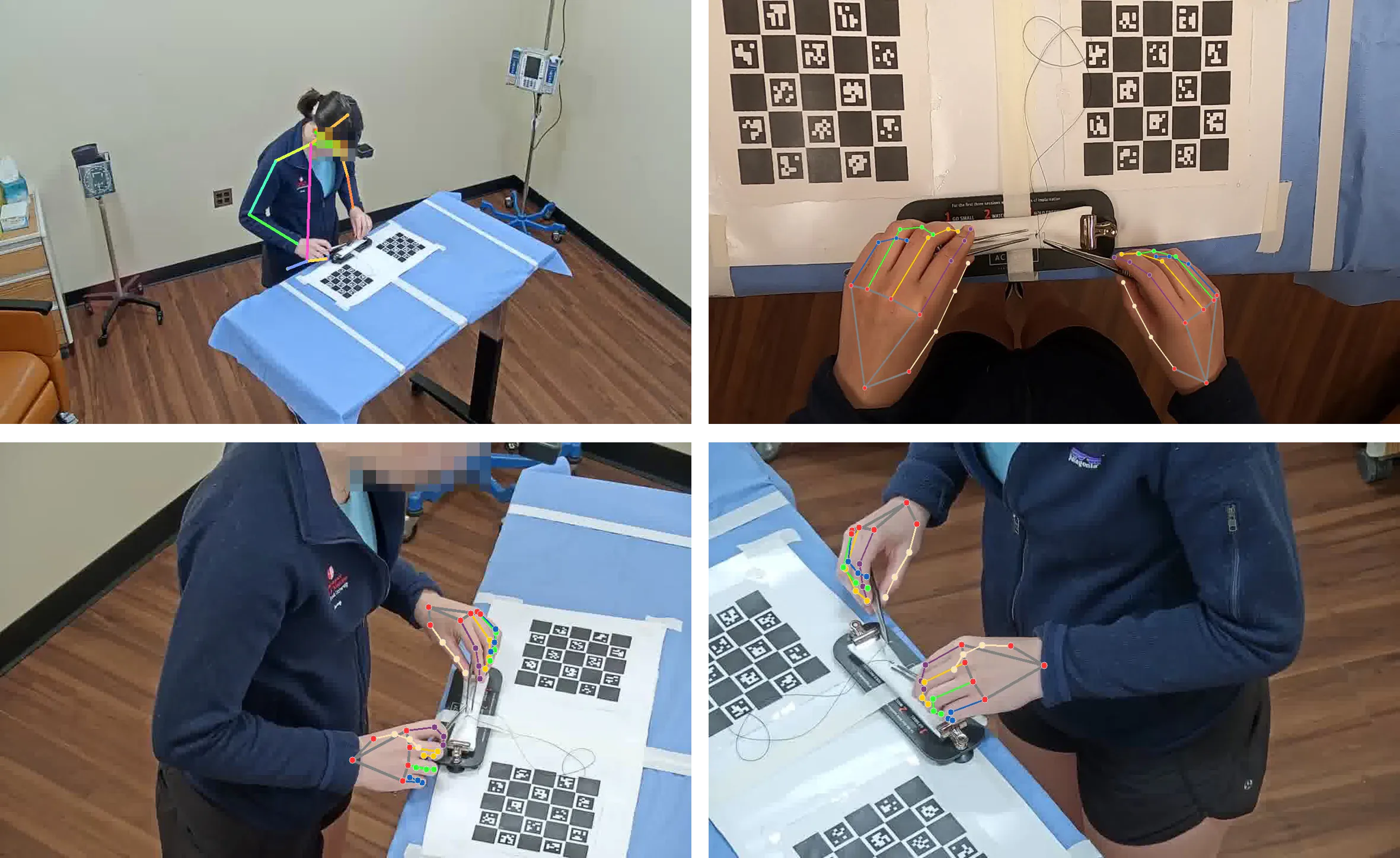 This project analyzed the behavioral patterns of different subject groups (students, residents, attendings) doing a surgical simulation task. 2D hand pose estimations were estimated from multiple views and triangulated to 3D hand pose sequences. A monocular body pose estimation model was applied to estimate the subject’s body pose movement during the task session. Analyses on the estimated pose sequences reveal significant differences between students and experienced doctors.
